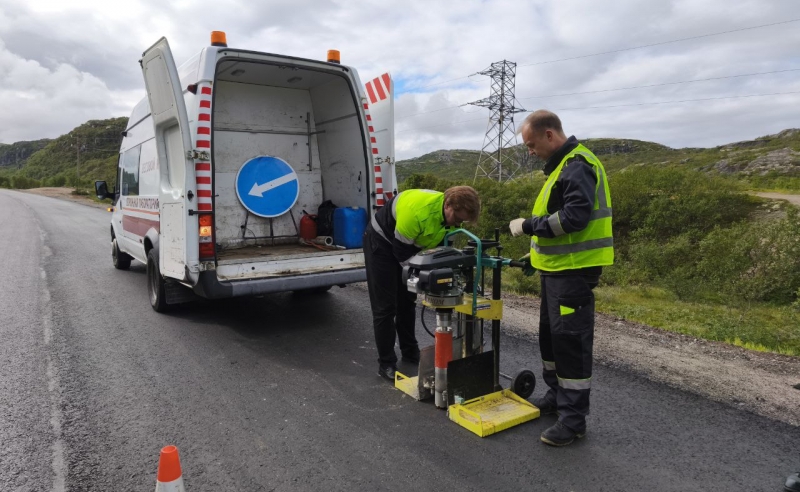 На автоподъезде в Териберку работают специалисты дорожных лабораторий