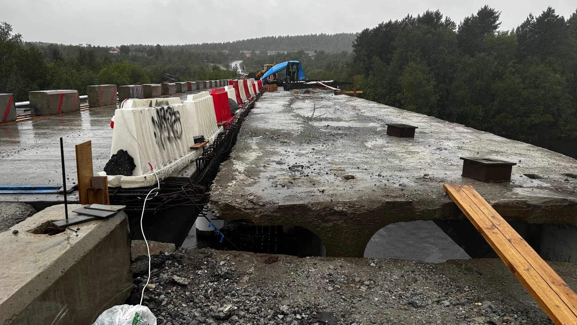 «Сейчас мы меняем подферменные площадки и поднимаем балки. Выполняем устройство межбаллочных швов и консольной части. Левую сторону мы уже практически завершили, сейчас работаем по правой стороне. В ненастную погоду, как сейчас, процесс не останавливается, мы продолжаем демонтажные работы и работы с бетоном», - рассказал Валентин Басов, начальник участка.