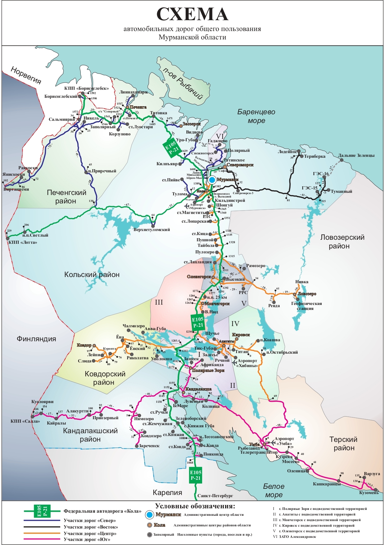 Схема автомобильных дорог общего пользования Мурманской области
