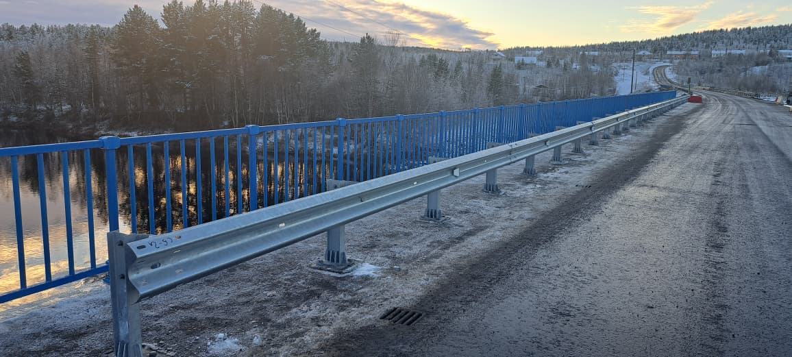 На мостовом переходе через р. Кола на автоподъезде к железнодорожной станции Магнетиты продолжаются ремонтные работы в рамках национального проекта "Инфраструктура для жизни".